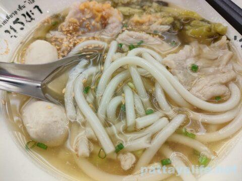 クイジャップユアンやラオスのカオピアックのようなモチモチした食感ではなく、日本のうどんからコシをなくして、やや固くしたような麺といえばいいのか。かなりあっさりした味の麺だ。