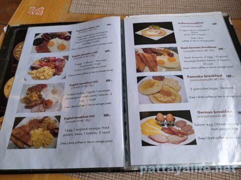 ちなみに、3年前にはあった59バーツの激安ブレックファーストセットはメニューからなくなったようだ。