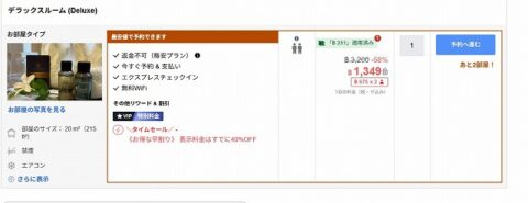 12月の料金をチェックしてみると、デラックスルームのみ利用可能で、1泊1,349バーツ。
