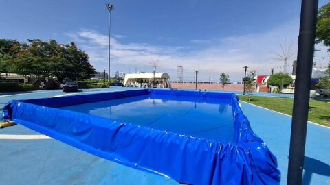 ランポー公園内にはプールが設置されている。