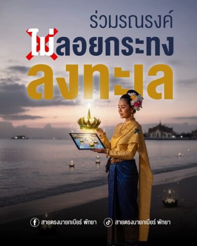 パタヤ市では、海に流すのではなく、イベント会場内の指定プールでのみ可能としている。もしくはオンラインで流してくれとのこと。