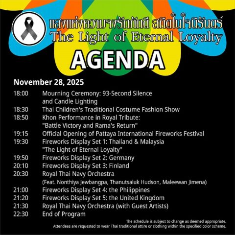 毎年恒例のPattaya International Fireworks Festival(パタヤ国際花火大会)だが、今年は、王太后の崩御を受けて、内容が変更となる。