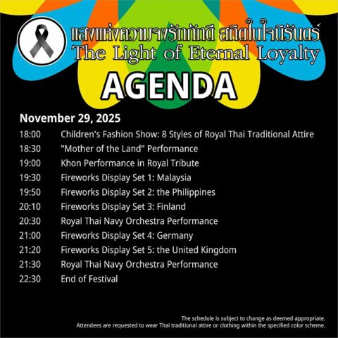 例年は、大きなステージが設置されて、花火打ち上げの間にライブが開かれるが、今年は王立タイ海軍オーケストラによる演奏などになる。派手な演出や演奏はない。