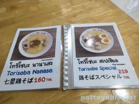 ネギ鶏そば125バーツ、七星鶏そば160バーツ、鶏そばスペシャルが219バーツ。