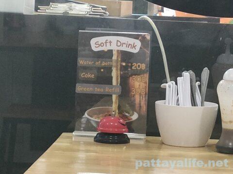 ドリンクは、水が20バーツ、コーラが30バーツ、おかわり可能な緑茶が39バーツ。