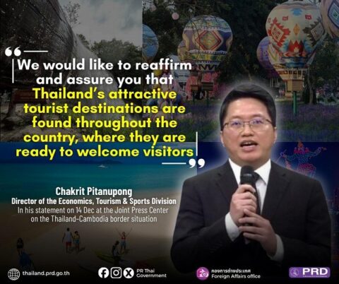 一部の国境地域では緊張状態が続いているが、タイ全土の観光活動は通常通りに継続されており、タイ全土の観光地は観光客を受け入れる準備が整っていると国際社会に対して保証する。