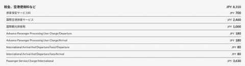 航空券代のほかに、税金、空港使用料がかかる。