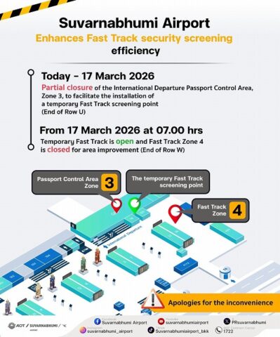 2026年2月26日午前1時から午前7時まで、ファストラックゾーン1は、機内持ち込み手荷物検査用のX線検査装置を交換するため、一時的に閉鎖する。