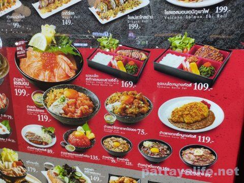 とんかつ弁当109バーツ、から揚げ卵漬け丼75バーツ、とんかつカレーライス119バーツなど。