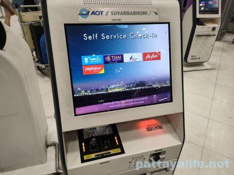 スワンナプーム空港には、このようなセルフチェックイン用のKIOSKが多く設置されている。
