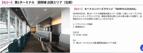 2026年4月1日に国際線搭乗エリアに新しいカードラウンジがオープンすることになった。