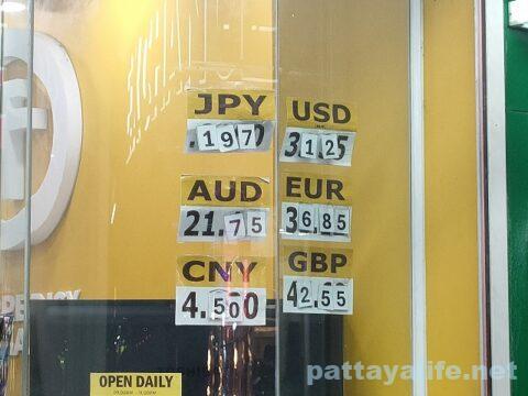 この日のTTカレンシーの両替レートは、1万円=1970バーツの表示だった。