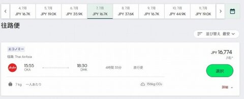 他のルートも調べてみたが、たしかにバンコクから日本へのフライトが数千円という表示が出てくる。