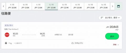 関空発バンコク行きが、片道20,843円。