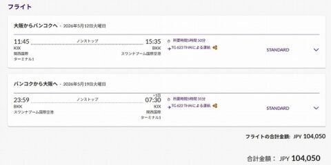 このさき航空運賃がさらに高くなる可能性もあるし、燃油サーチャージも上がるかもしれないが、この価格帯で購入するのは見合わせたほうがいいように感じる。どうしてもタイへ用事があり、レガシーキャリアの直行便でないと嫌だという人以外にはおすすめできない。