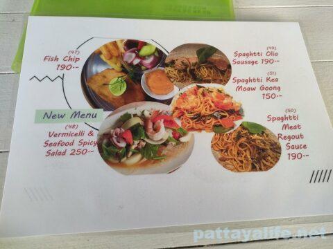 フィッシュ&チップスが190バーツ、スパゲッティキーマオクンが150バーツなど。