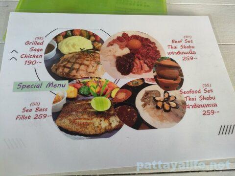 小椀が90バーツ、熱鍋だと190バーツ。このあたりの表記は、無理やりなカタカナよりも中国語のほうがわかりやすかったりする。