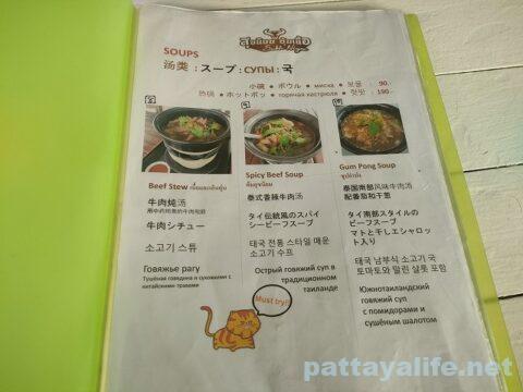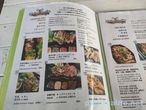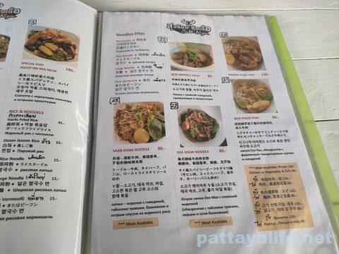 メニューは、英語とタイ語のほか、中国語と日本語と韓国語とロシア語が併記してある。まあ、日本語はほぼ直訳ないしタイ語をカタカナにしたものだけど。
