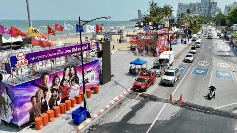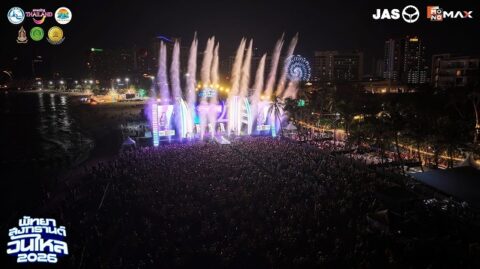 パタヤビーチでのイベントの様子は、テレビ局によってライブ配信される。